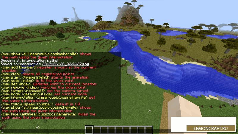 Мод CMDCam предназначен для съемки игрового процесса. Благодаря различным настройкам вы сможете запечатлеть все, самые интересные моменты игры. Камера поддерживает 4 вида интерполяции, а так же вращение и масштабирование.